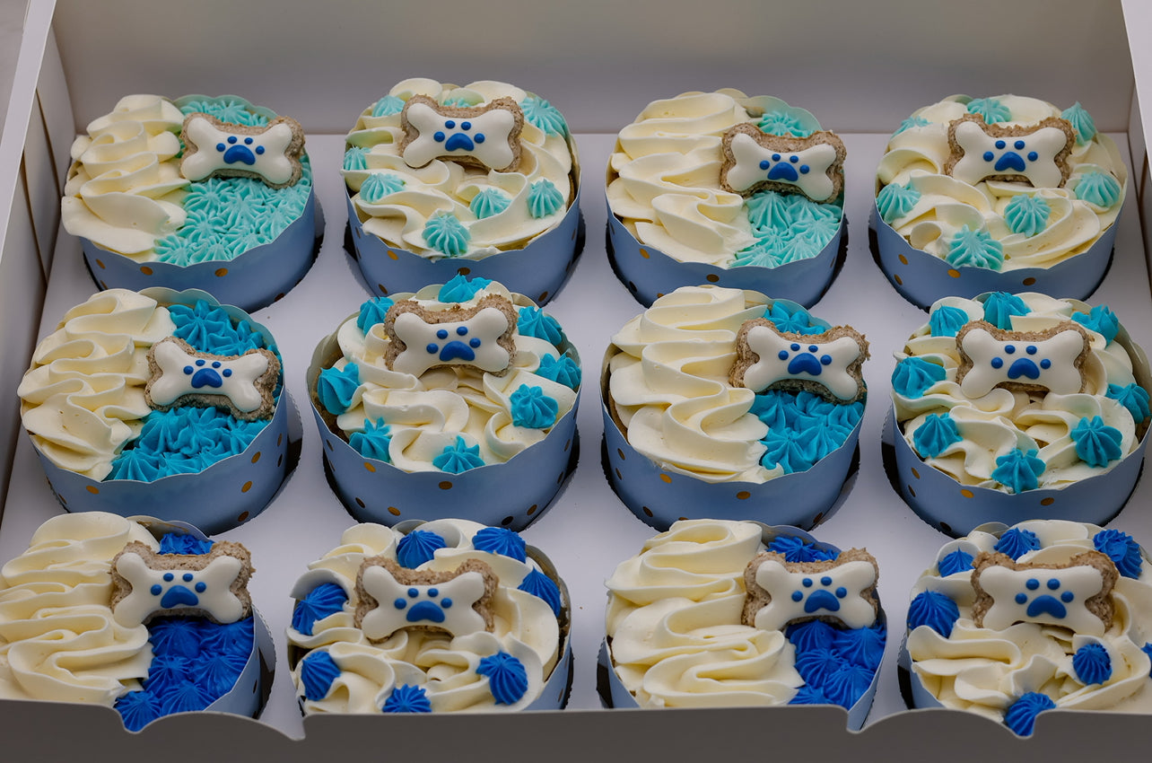 Our bundle includes a 5x4 cake, 4, 8, or 12 cupcakes for puppy guest. You can customize your cake with 2 different colors, a puppy’s age, and a cookie paw. Our cupcakes will be decorated with a bone-shape cookie or a cookie paw. Let us take care of the details, so you can sit back, relax, and enjoy.