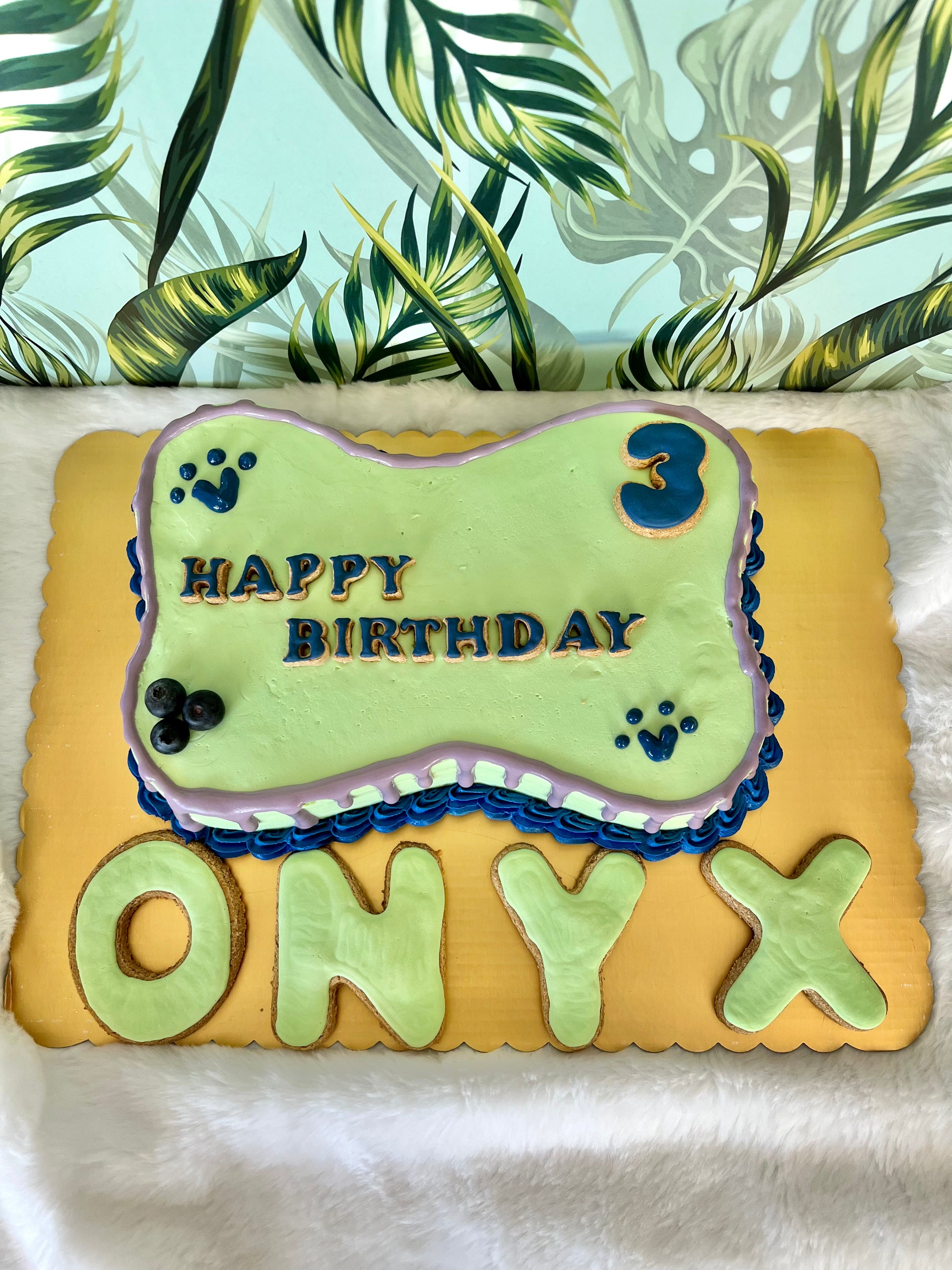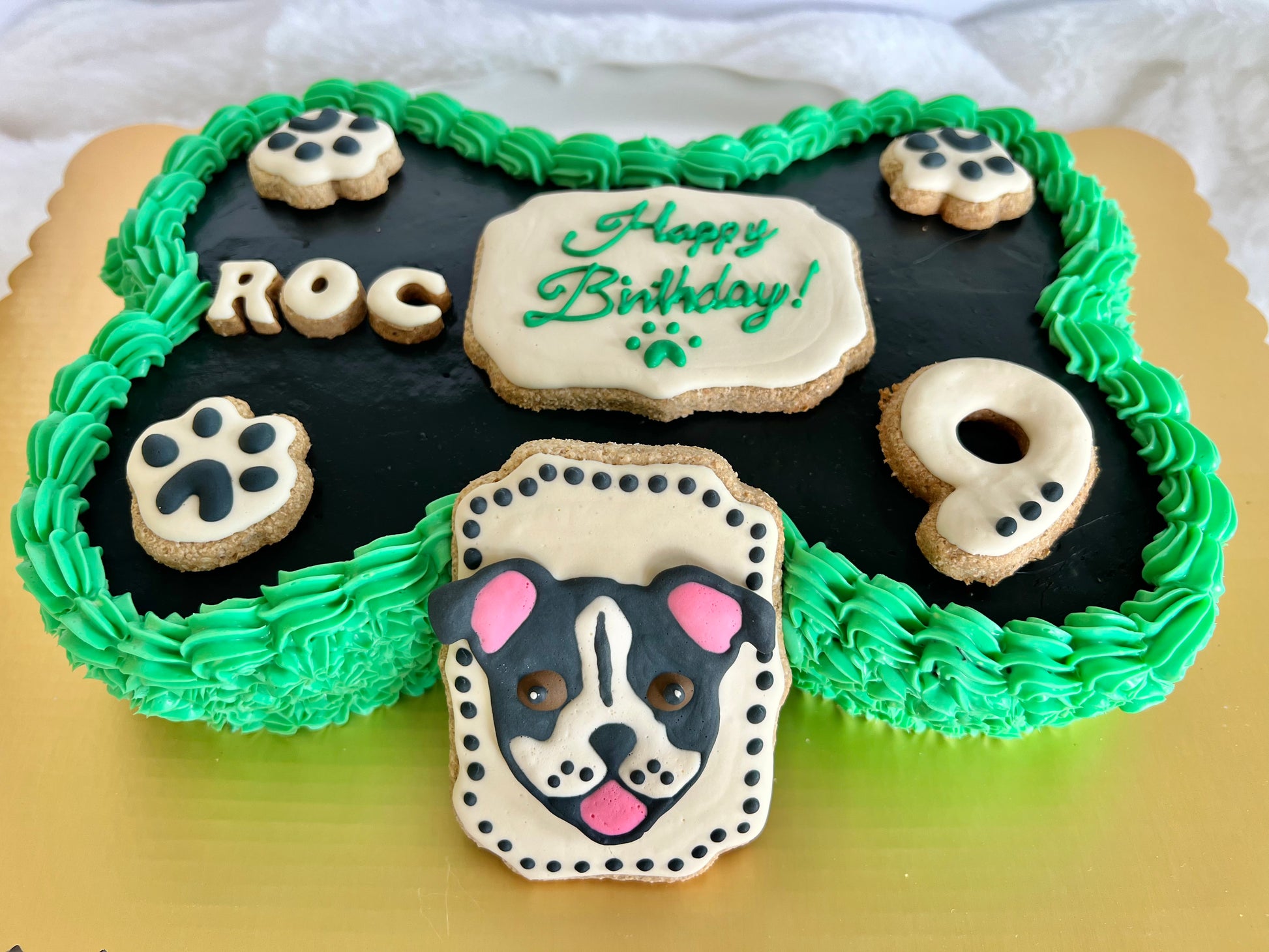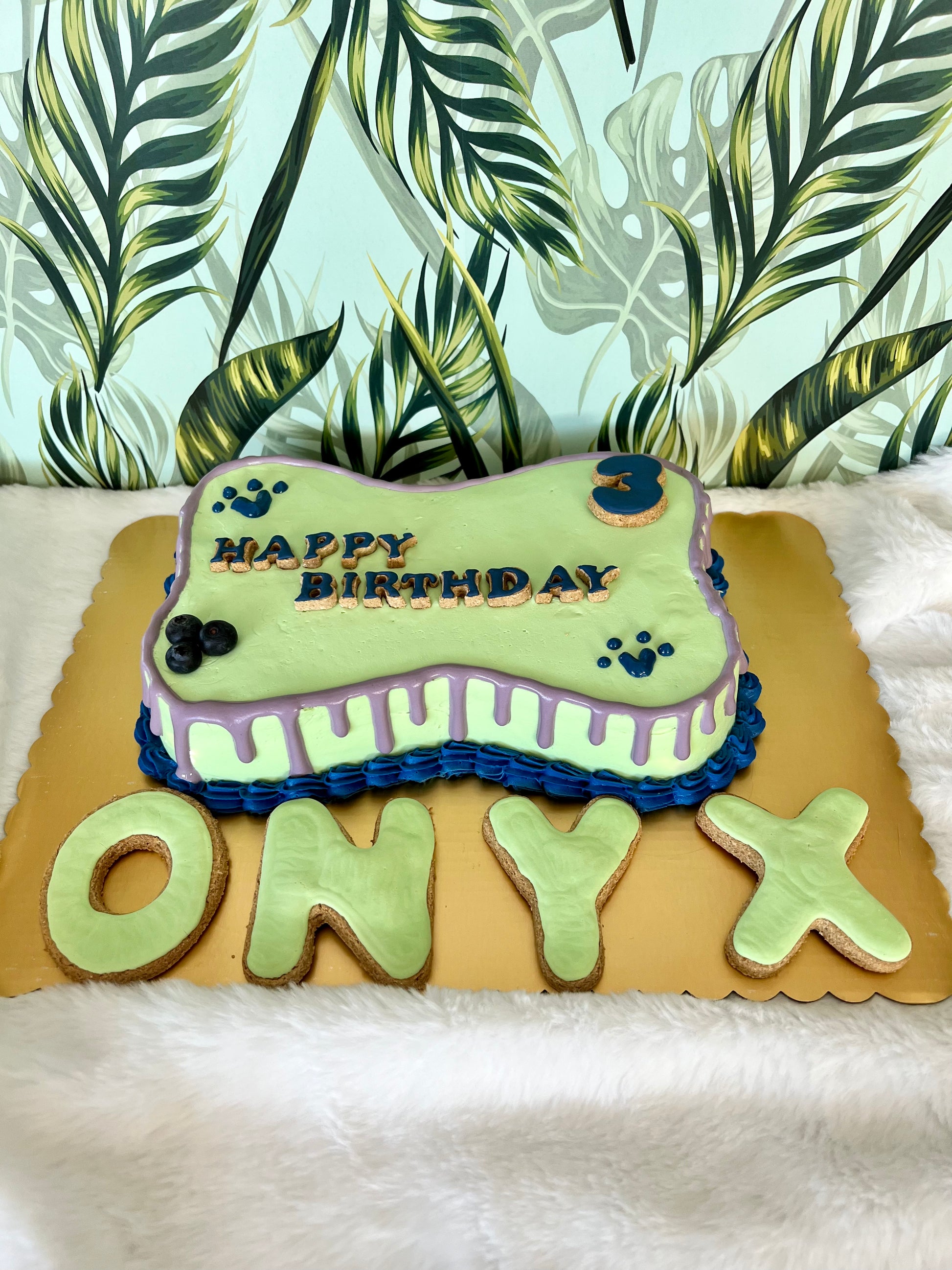 Our new bone shape cake will be available to your puppy birthday pawty!!